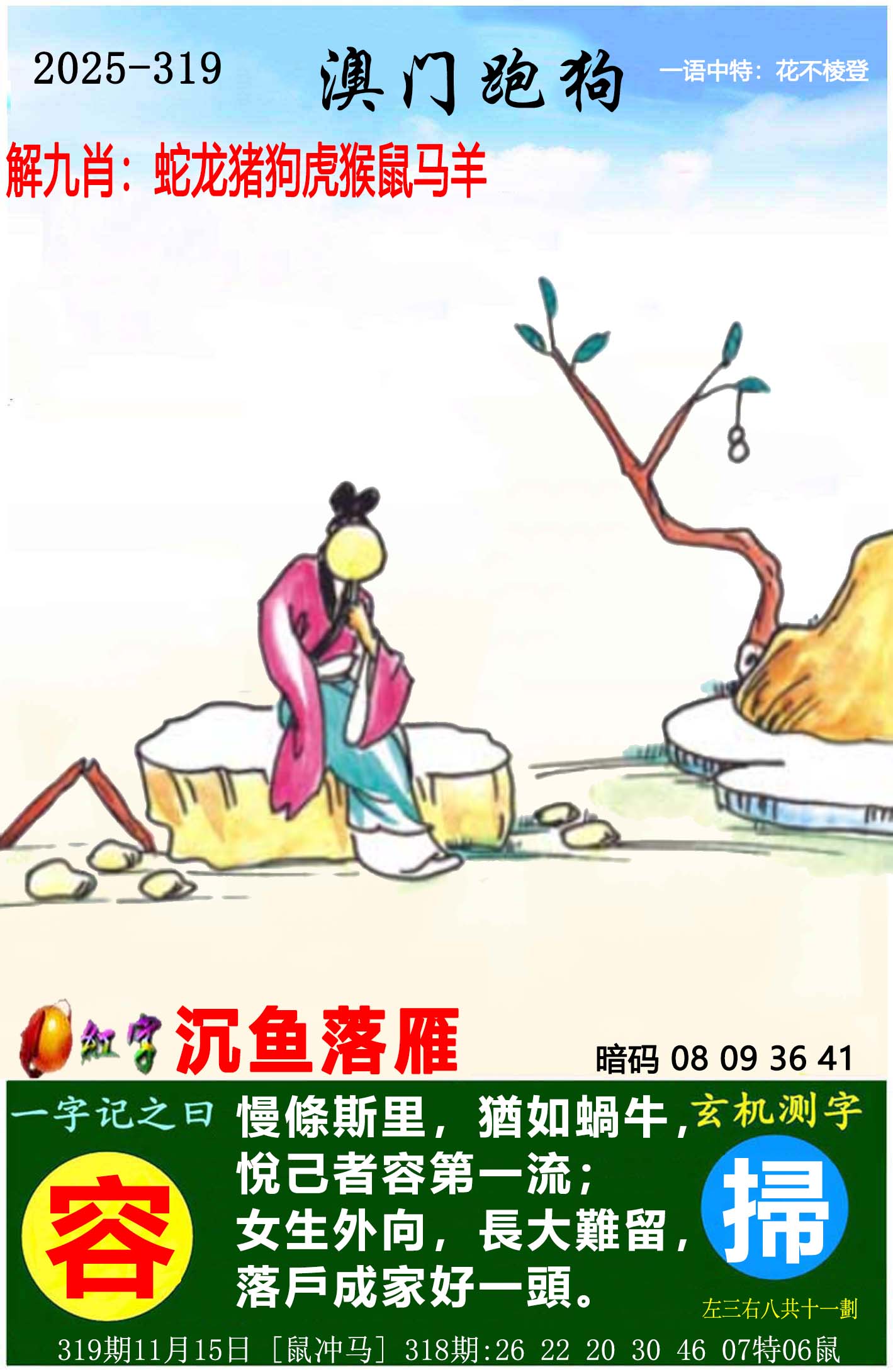 318期:⑨肖 猪蛇兔狗猴鼠牛马羊 开06鼠准